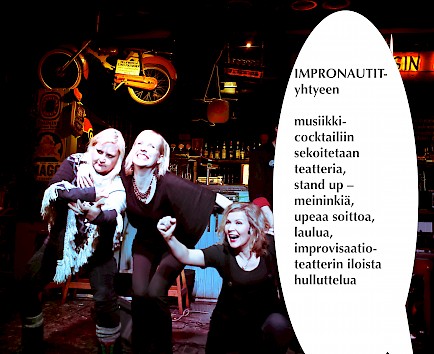 Impronauttien energiseen esityscocktailiin sekoitetaan teatteria, laulua, improvisaatioteatterin hulluttelua, lämminhenkistä huumoria. Ryhmässä on ammattinäyttelijöitä, joilla on takana runsaasti tv-sarjoja ja tuotantoja teatteriproduktioissa sekä musikaaleissa. Esiintyjiä 2-6, aina tilaisuuteen sopivasti!